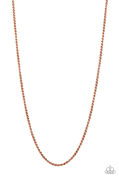 A dainty copper wheat chain drapes across the chest for a classic look. Features an adjustable clasp closure.