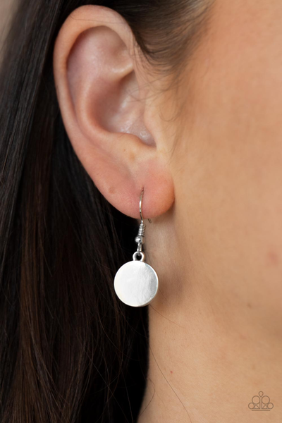 A shimmery collection of dainty silver discs, shiny silver rings, and Burnt Coral shell-like frames delicately link across the chest, creating a summery display. Features an adjustable clasp closure.